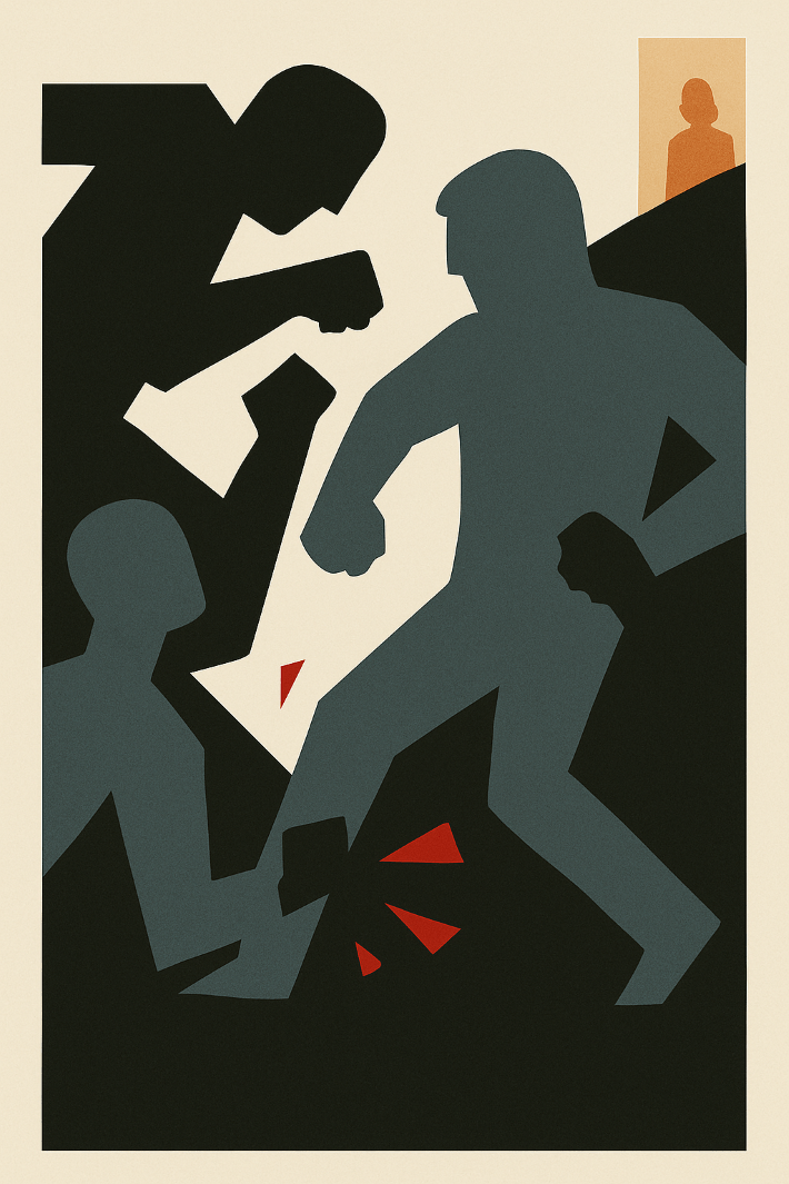 Daan komt thuis van werk. Het is bijna donker. Hij pakt zijn fiets, rijdt naar zijn nieuwe woning. Zijn rug doet zeer – de hele dag met zware planken gesjouwd. Hij ziet het al van ver. De brievenbus bij de voordeur: volgespoten met rode verf. Druppels, als bloed. En op zijn deur, in grove letters, met een spuitbus: